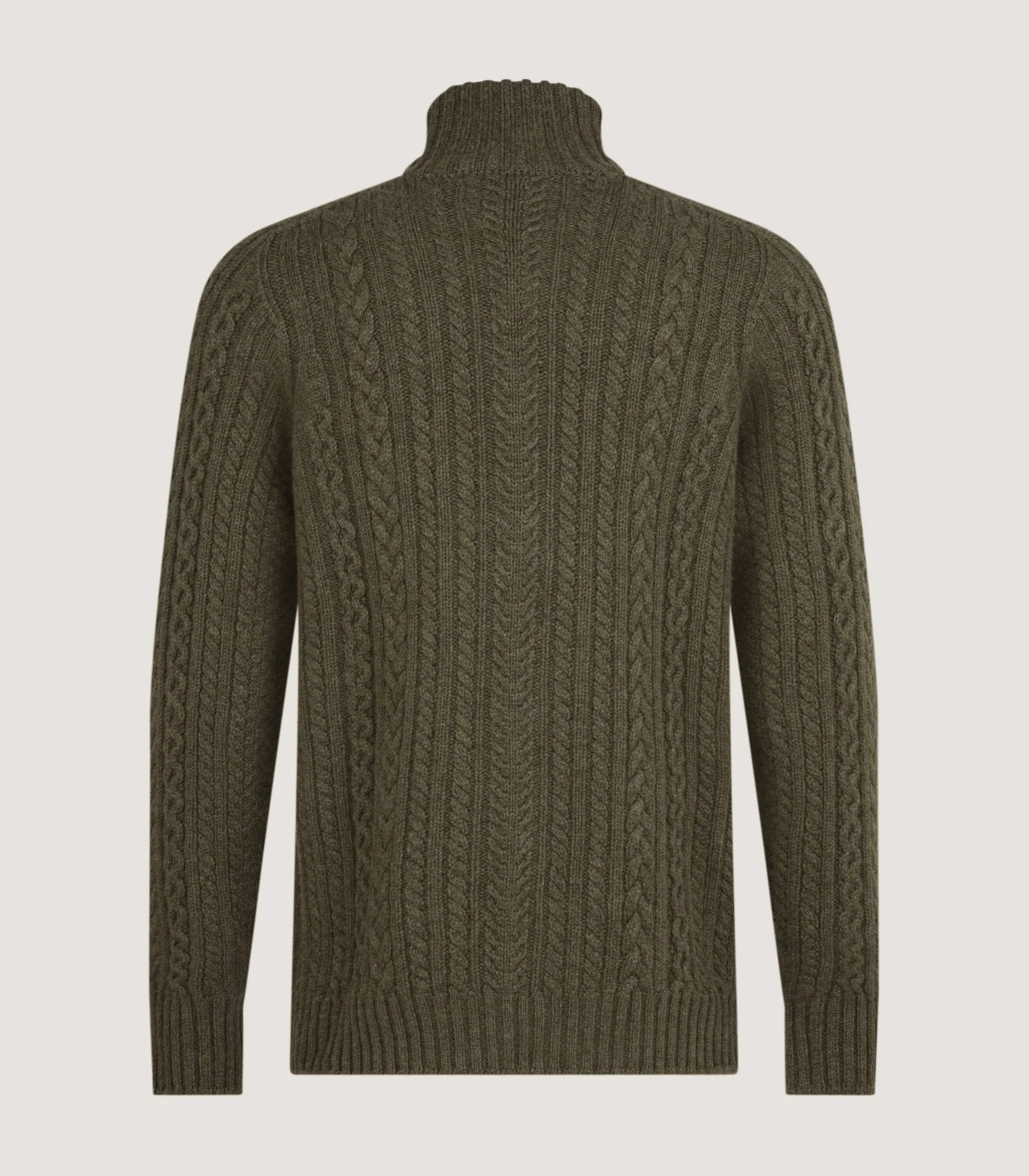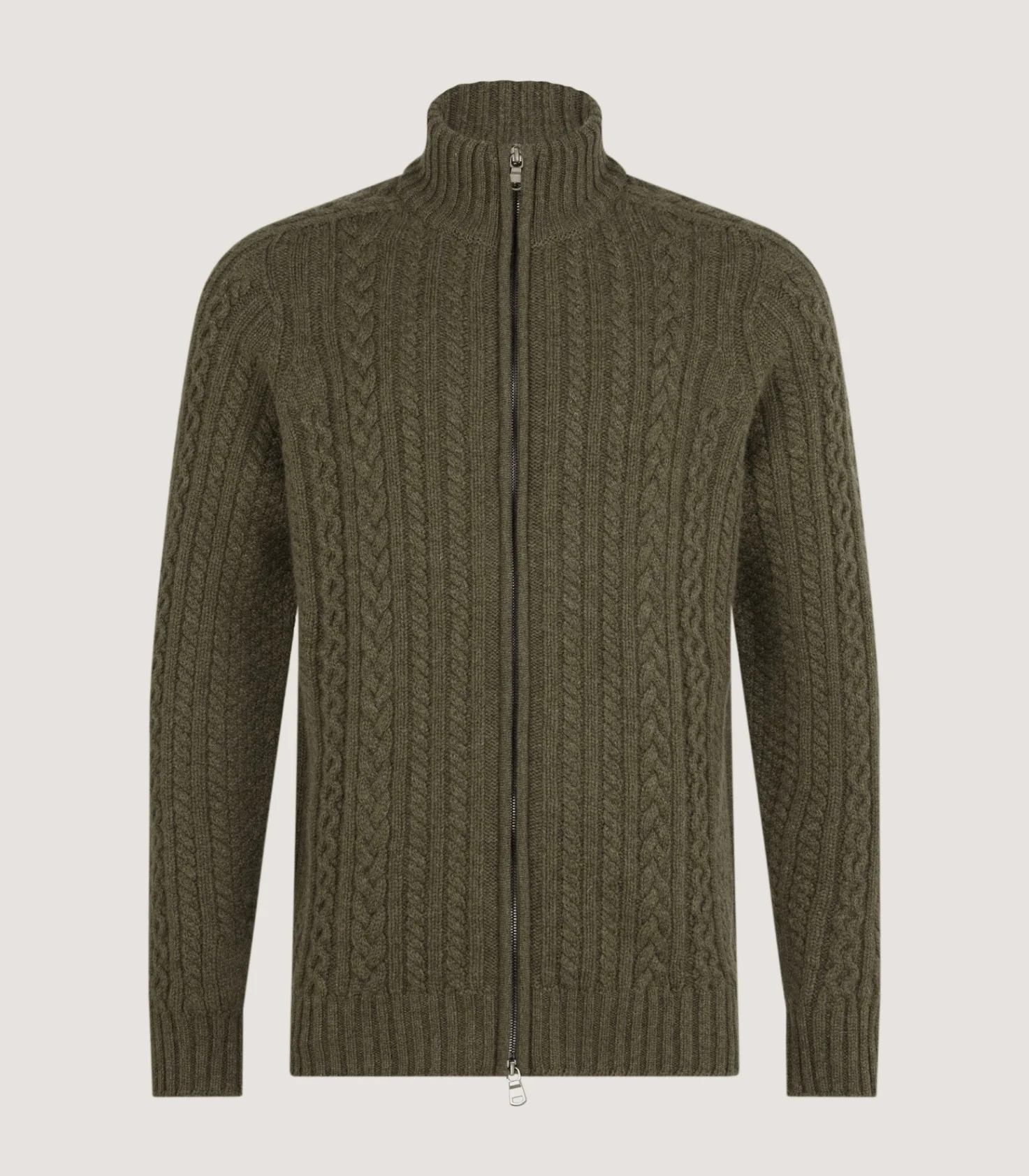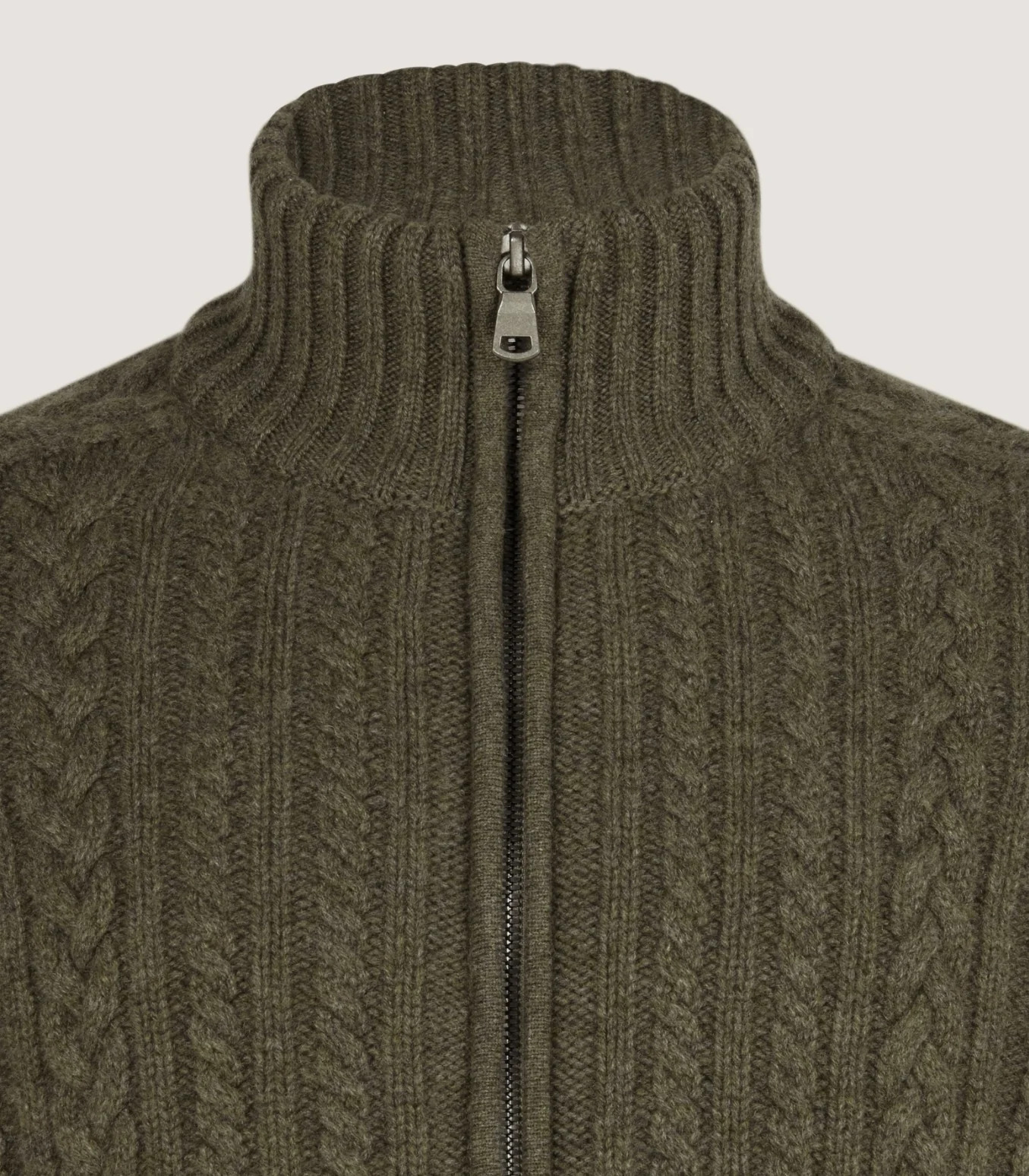 Burlington Wool Cashmere Cable Knit Zip Cardigan in Moss