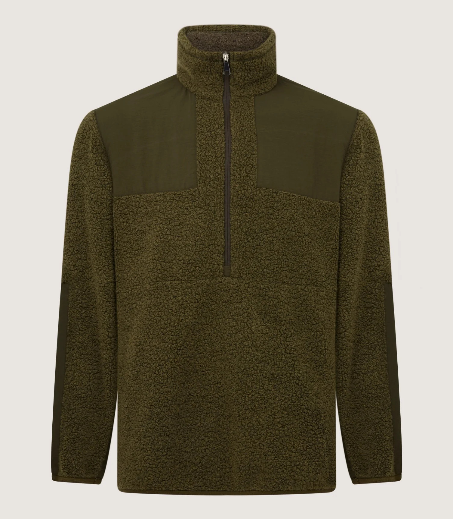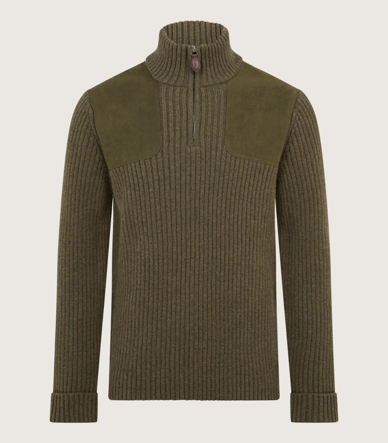 Burlington Wool Cashmere Cable Knit Zip Cardigan in Moss