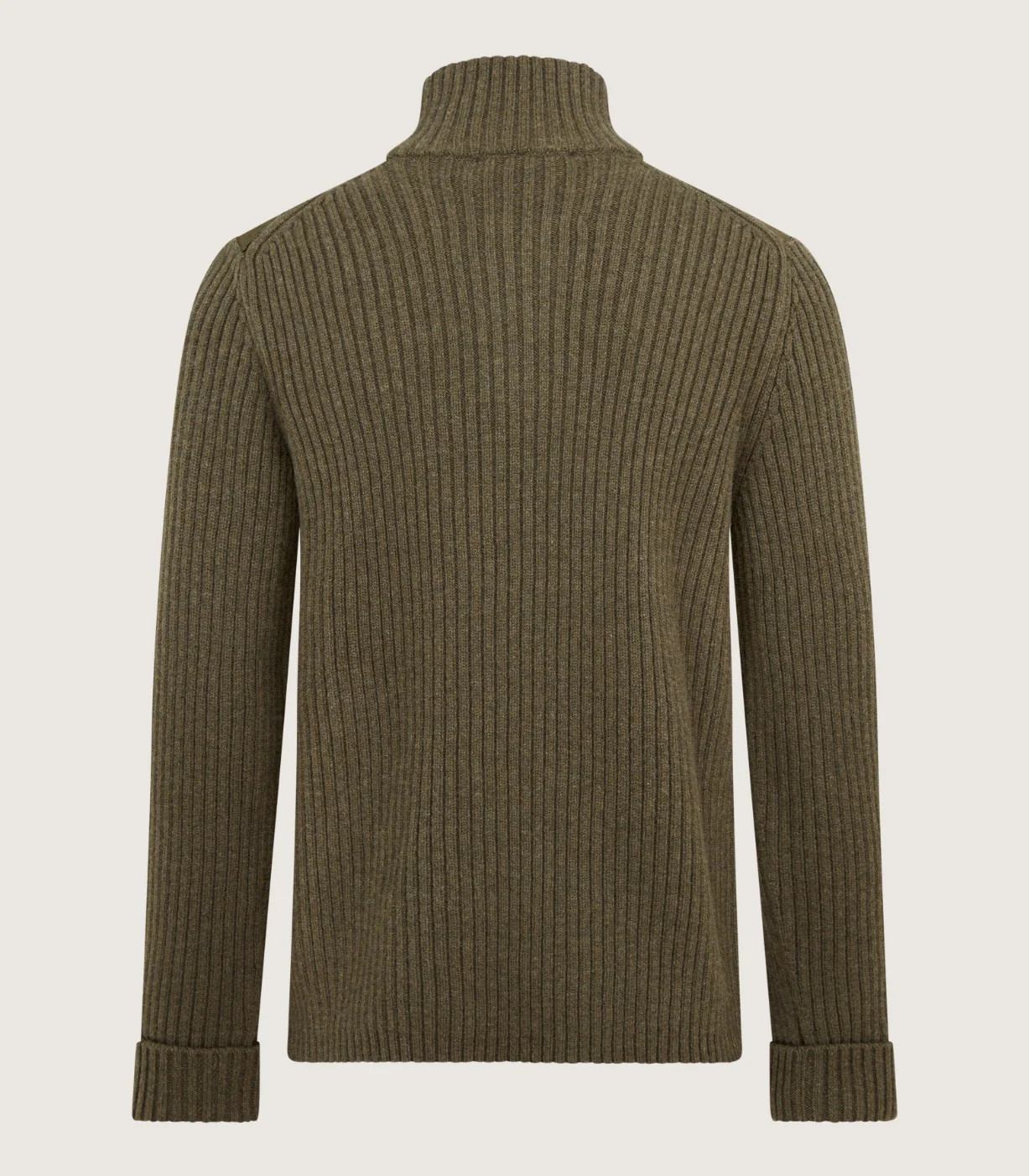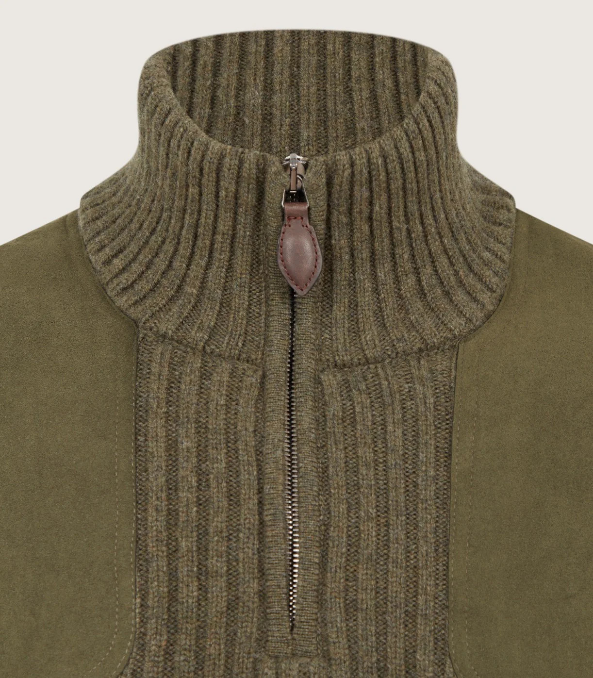 This sweater was crafted in Portugal entirely from wool. Its ribbed design has a quarter zip and Purdey branded leather puller at the zip. The shoulders have reinforcement patches to ensure more durability for this garment.