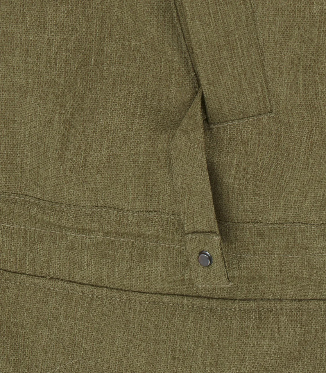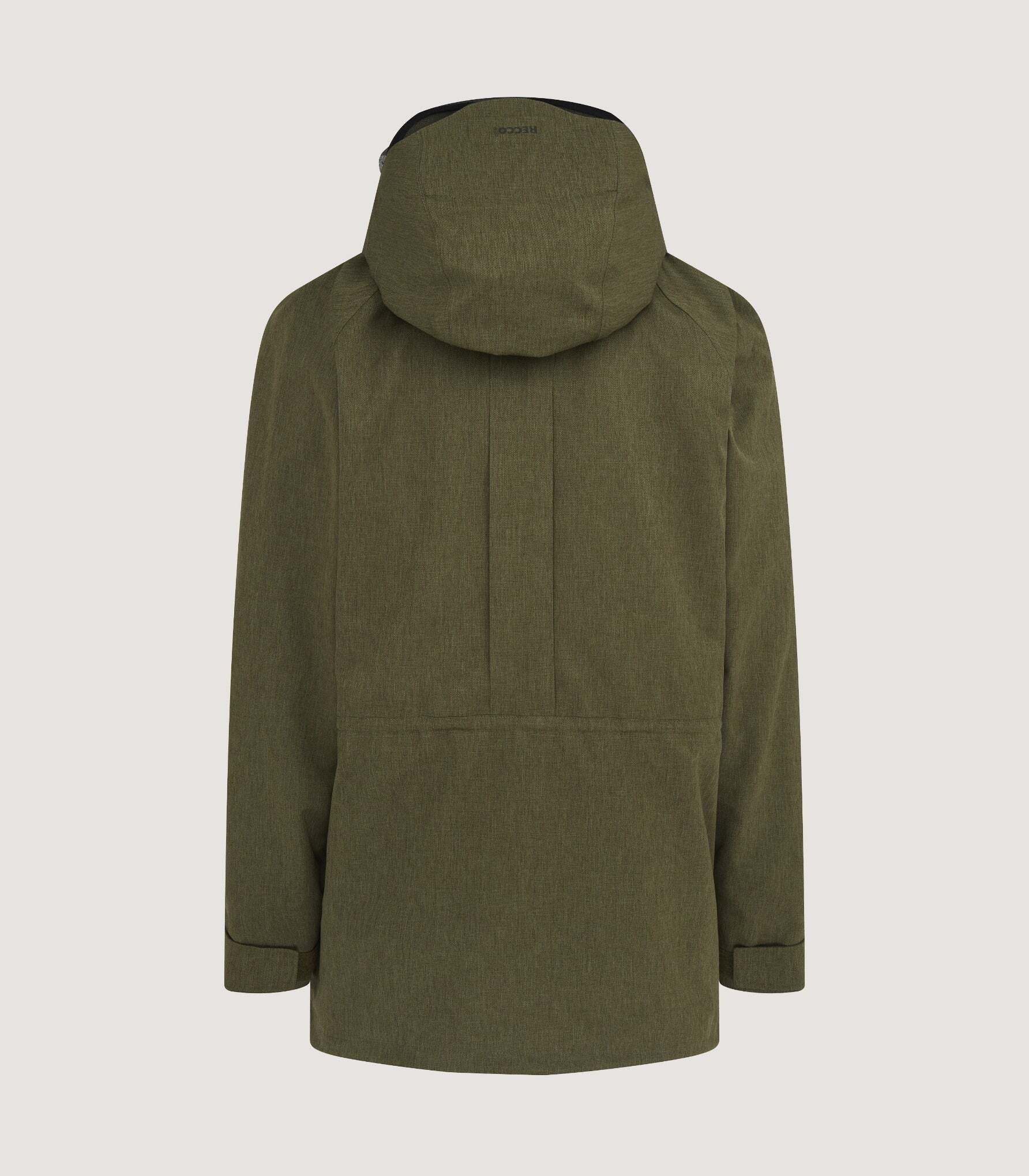 This field coat includes a combination of technical features to keep you dry and comfortable — including centralised back action, a reinforced hood that's detachable and a drop seat detail to keep you dry when seated on wet surfaces. It's available in moss green.