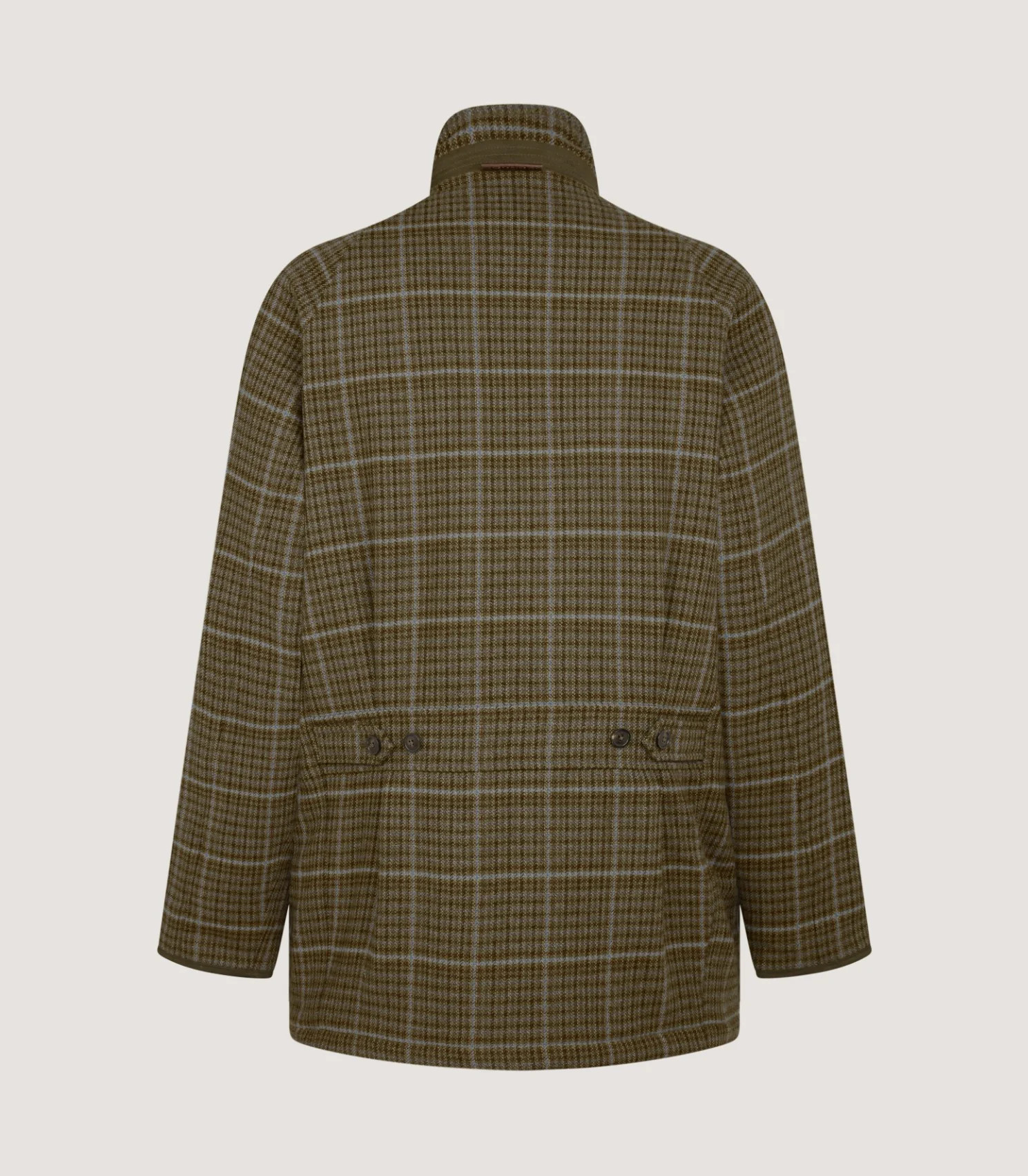 The highlight of our Tom Purdey tweed collection is our classic Field Coat. The Purdey Field Coat is a sophisticated take on a traditional design, crafted in Italy from luxurious 100% Scottish tweed. It's built for warmth and protection with a Sympatex drop liner membrane and HD wool wadding, making it ideal for chilly winter days. The coat features a quilted lining and sleeves, a large internal stow pocket, a zipped security pocket, and practical cartridge pockets. Details include a concealed snap front storm placket, a front zip closure, fleece-lined hand warmer pockets with retainer straps, a leather Purdey embossed tab, a clarino collar stand, and merino knitted inner cuffs. The coat is designed for a relaxed fit.