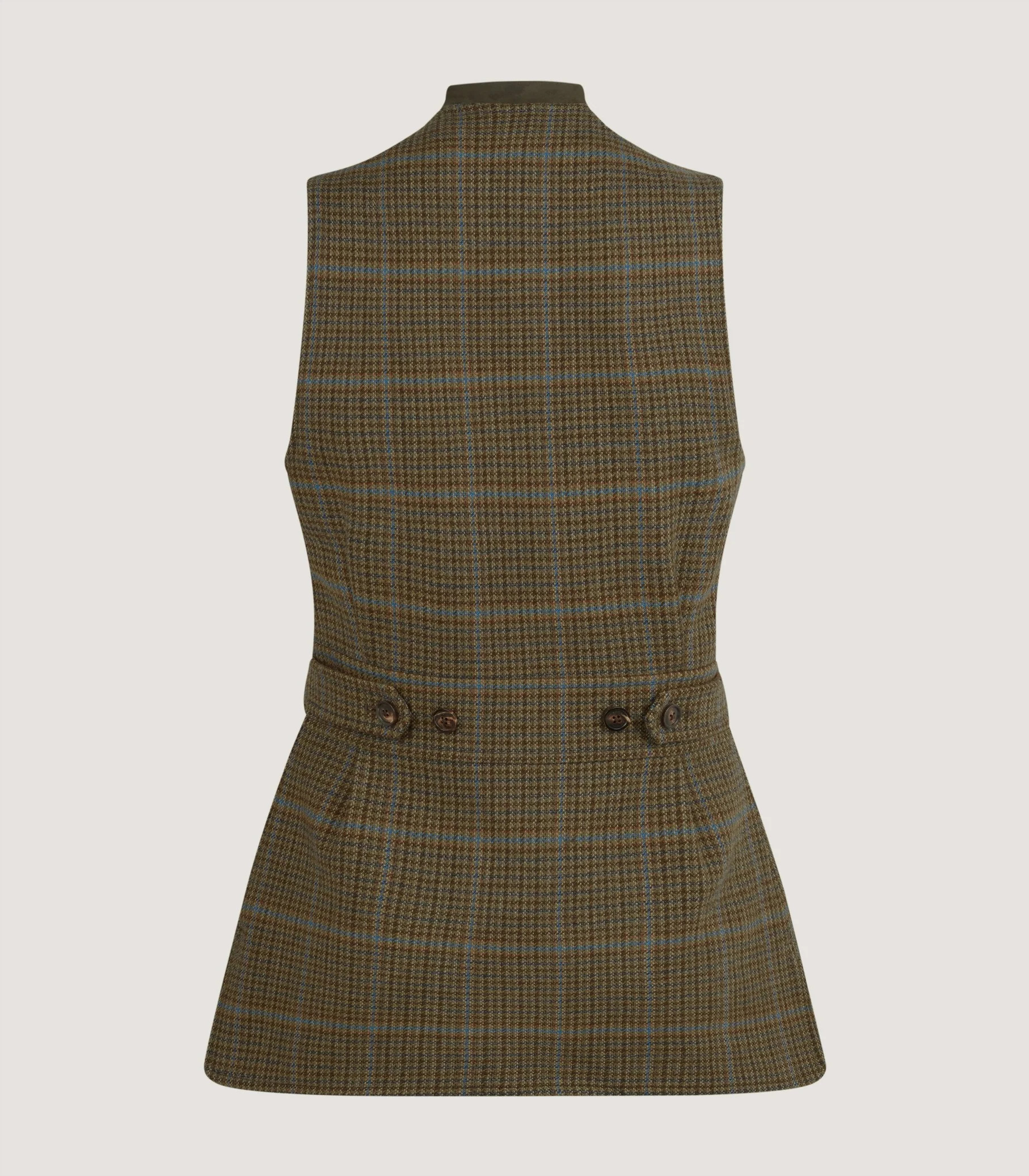 This classic shooting vest for women is crafted from 100% Scottish wool tweed in our new Tom Purdey offering. It features a traditional high collar, shooting patches for enhanced grip and shoulder protection, and adjustable back tabs for a tailored fit. Details include a throat latch, cartridge pockets, faux suede trim, and internal security pockets. Made in Portugal.
